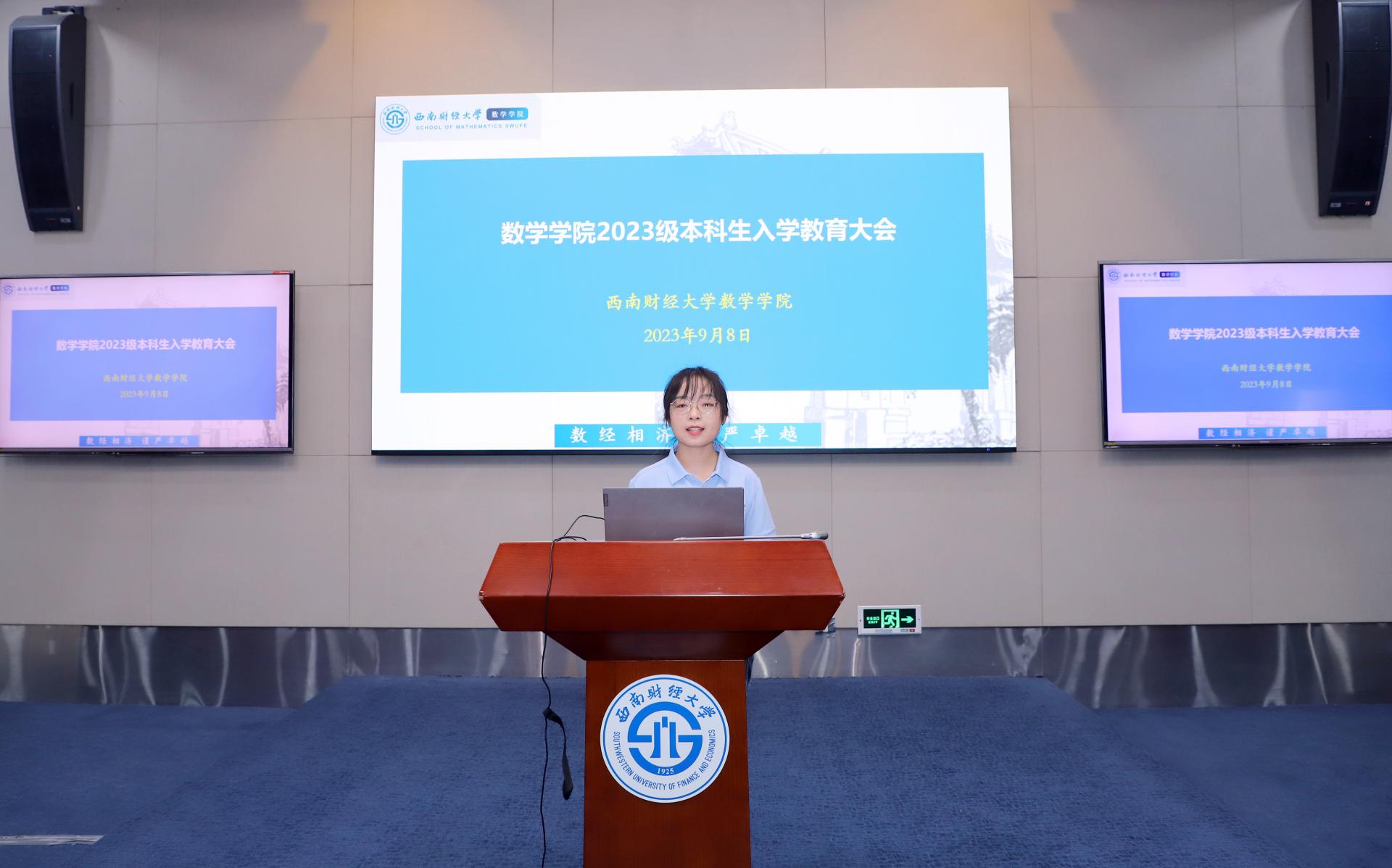 学院党委书记樊俊飞副教授向2023级新生及家长表示诚挚祝贺和热烈欢迎。他谈到,学院和家长是育人共同体,希望二者能够有机协同、携手并肩,共同助力学生发展进步,努力成长为具有“大气为人、大智谋事、大爱行天下”西财青年品格的,能够把握历史机遇、志存高远的新时代青年。他寄语2023级本科新生要做一个有理想、有信念、有信心的新时代西财数学人;要做一个人格健全、心中有爱的新时代西财数学人;要做一个刻苦学习、追求卓越的新时代西财数学人。
