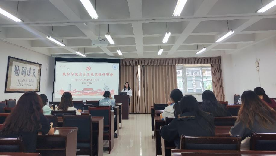 胡喜媚结合《中国共产党发展党员工作细则》介绍了发展党员工作的总要求、原则以及工作重点。她对大学生入党流程作了细致讲解,从申请入党阶段、入党积极分子确定与培养阶段、发展对象确定与考察阶段到预备党员的接收教育考察以及转正阶段逐步进行解读。现场与会同学的积极性很高,纷纷举手提问,胡喜媚分别对递交入党申请书时间、出国留学时间冲突等问题作了具体回答。此次讲解会让同学们进一步加深了对党组织的认识,对入党总体流程及其细节内容有了充分了解,坚定了理想信念,端正了其入党动机,为今后高标准、高质量做好发展党员工作奠定了坚实基础。