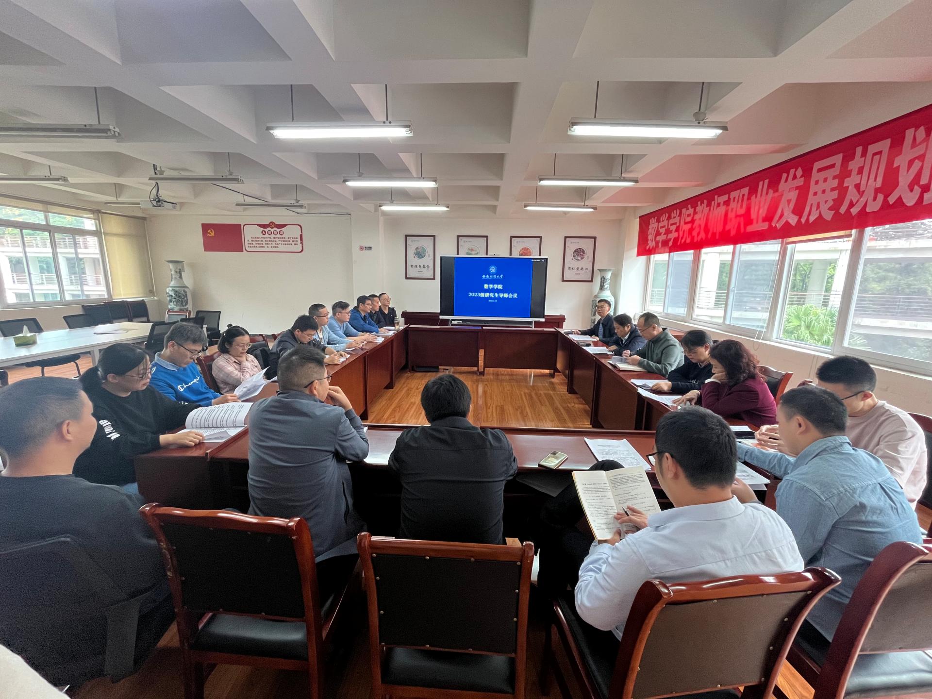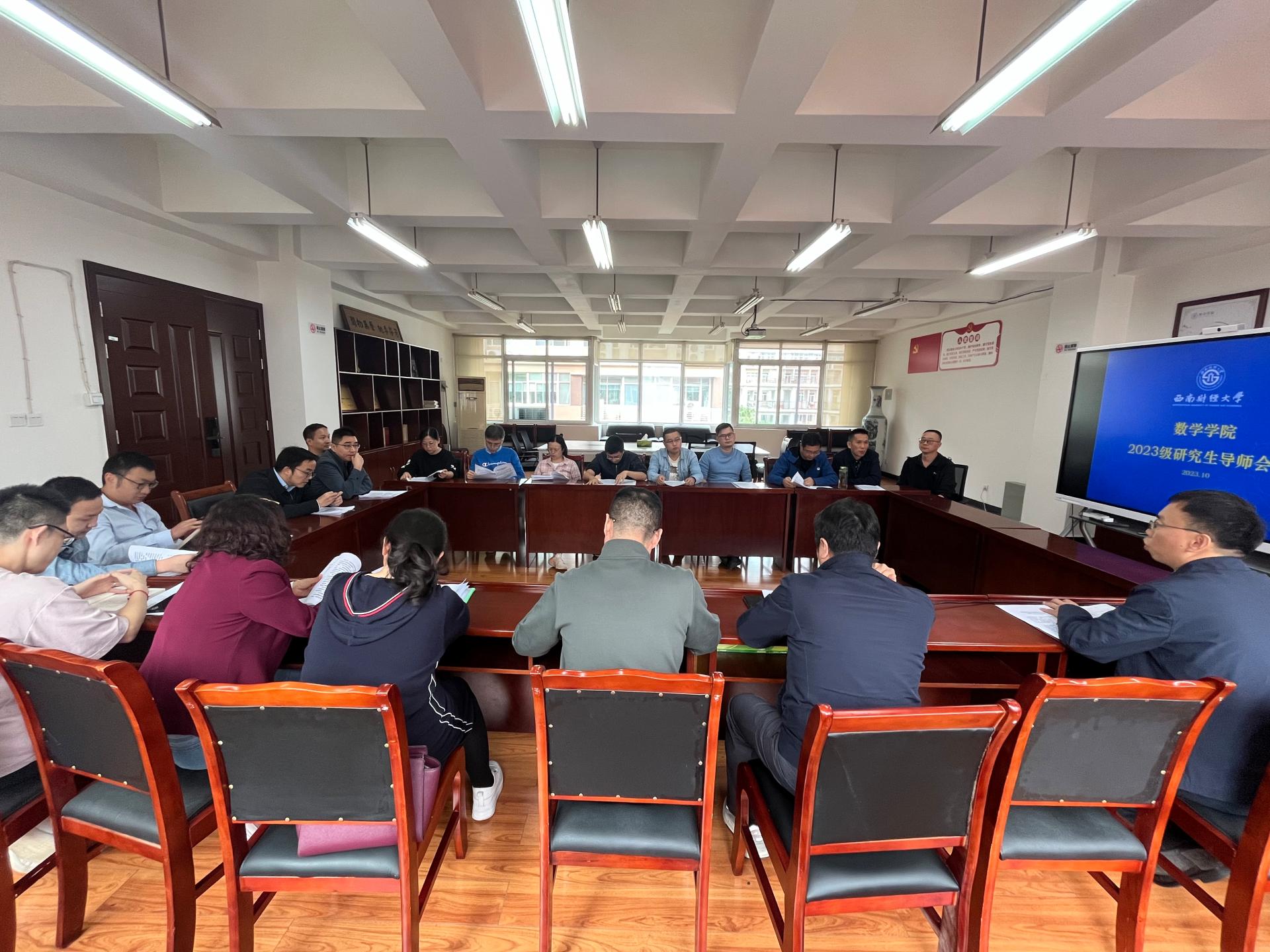 马敬堂院长指出,导师是研究生培养的第一责任人,肩负着培养德智体美劳全面发展的社会主义建设者和接班人的使命,号召各位导师遵守教育规律、创新指导方式、提升综合素质,做好研究生成长成才的指导者和引路人。樊俊飞书记要求全体导师提高政治站位,增强研究生导师立德树人的使命感和责任感;深入学习落实《新葡的京集团8814vip全面落实研究生导师立德树人职责的实施细则》;率先垂范,以高超的学术造诣和高尚的人格风范引领研究生成长成才。丁川副院长介绍了2023级硕士研究生师生双选情况以及学院组织导师网络培训的计划安排,领学了《新葡的京集团8814vip全面落实研究生导师立德树人职责的实施细则》。研究生导师代表、数理金融研究中心主任赵建容教授分享了学生培养的四点经验:一是通过定期召开讨论班的形式,增加师生联系,建立良好的师生互动;二是因材施教,根据不同学生的基础和实际情况,制定适合的学习计划;三是及时关注学生状态,在学生产生困难时及时疏解;四是导师要关注了解学校学院相关政策,以便更好地助力学生成长。数学研究所副所长王永富教授分享了自己作为青年教师的学生培养经历,认为学生培养不应功利化,导师选择学生,不应仅凭学生基础简单选择;导师要通过定期讨论班等形式加强与学生的沟通和互动;认为学生培养的过程也是师生相互成就的过程。
