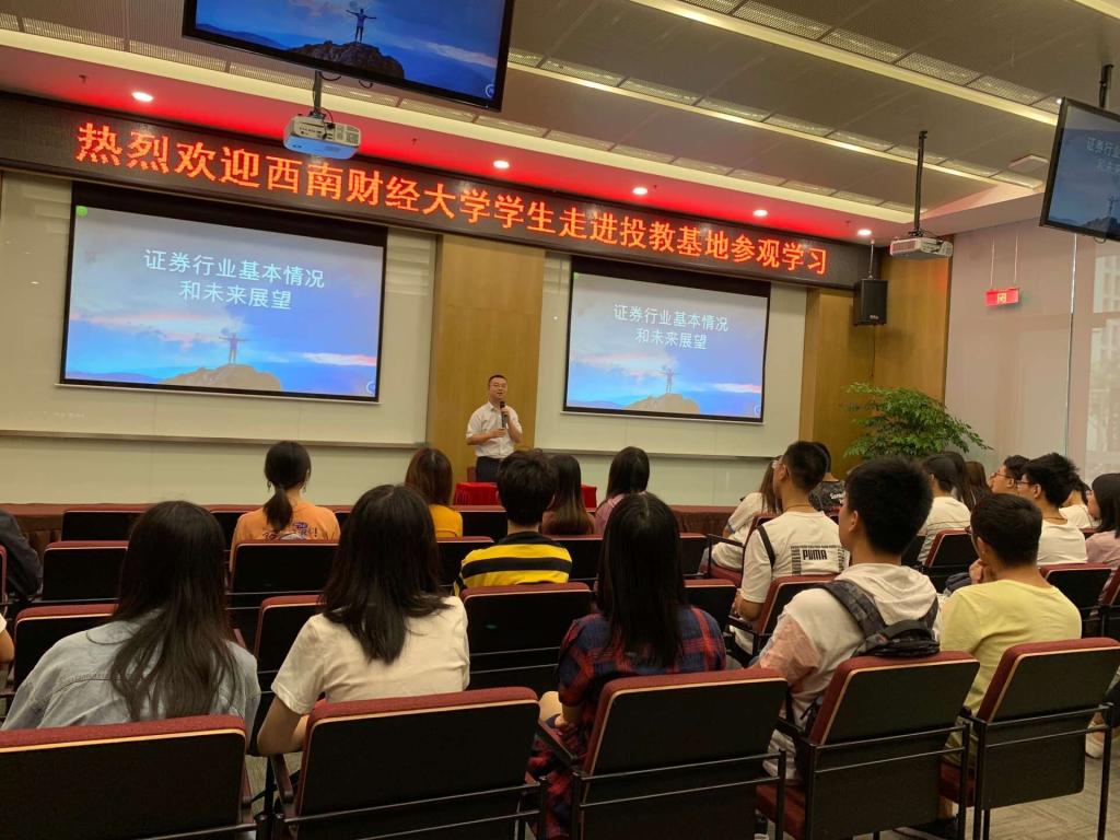 同学们参观了华西证券股份有限公司的投资者教育基地,参观了十四大功能区,中国证券市场改革开放成就展示区、四川资本市场展示区、模拟交易区、适当性管理区、投资者保护综合展示区、意见征集区、风险警示区、国民教育展示区及独具特色的中国证券历史文化展示区。
