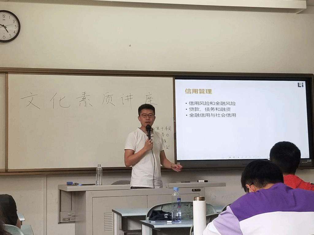 先是讲了一段关于“花呗”的故事,故事情节引人入胜,同时给我们带来了积累信用,今天的钱和明天的钱等概念,就此,李老师从真信体系发展讲起,介绍了信用到底是如何影响我们生活的。后来又讲述了借于贷着个古老的关系随后讲述了自己的一些研究目标,呼吁同学们可以多出去见见世面,但是一定要回国回报祖国的培养,为在场的每个同学树立了精神上的榜样。又说明了数学是和编程以及未来发展的重要关系。这次讲座无疑扩展了同学们的思维,给每个人都带来了新思考。