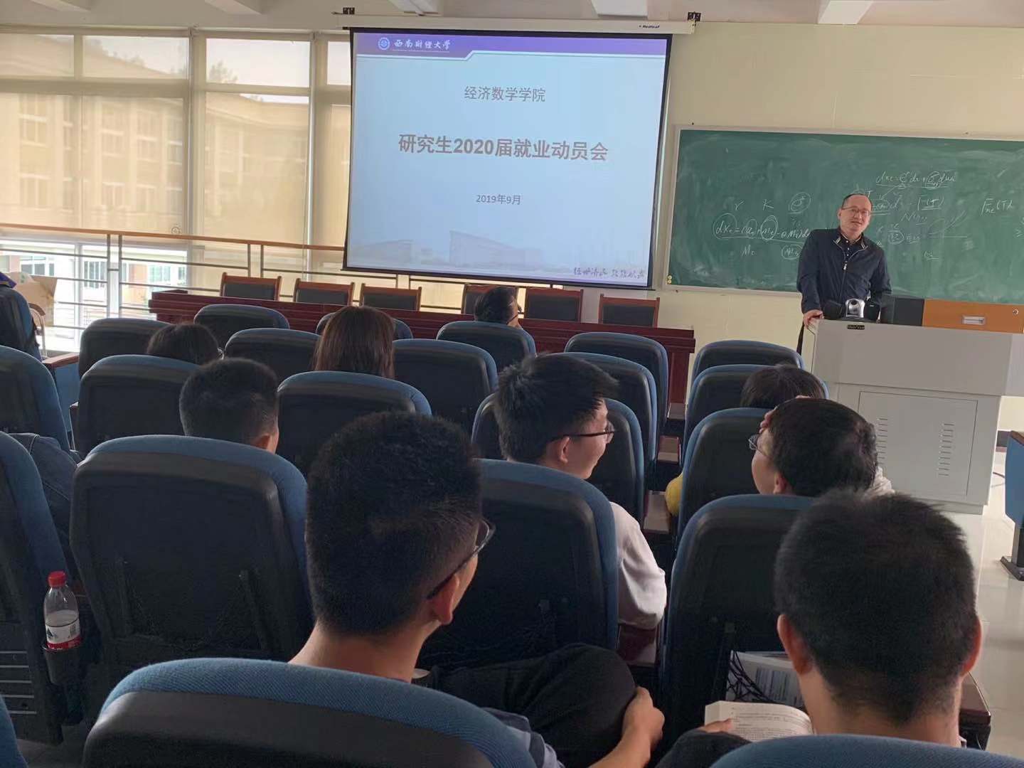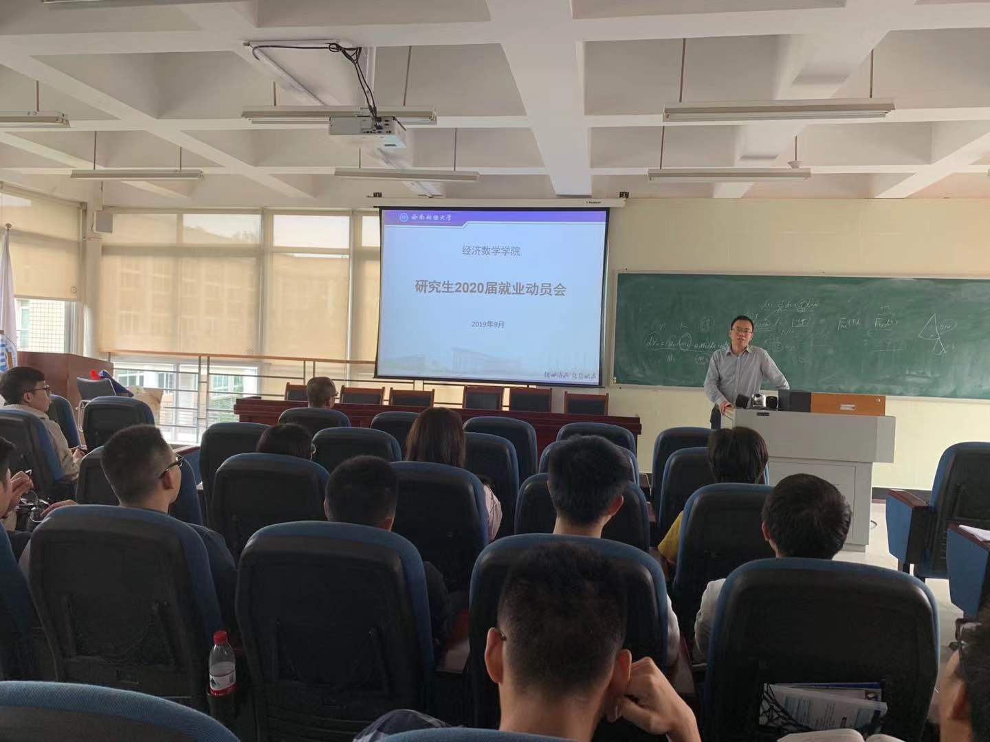 2019年9月18日下午,经济新葡的京集团8814vip在通博楼B412召开2020届研究生毕业生就业动员会,副书记樊俊飞、副院长丁川,及全体2020届研究生毕业生参会。会议由研究生辅导员主持。