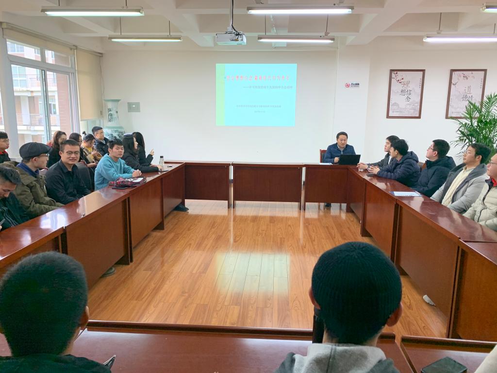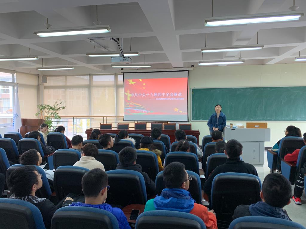 在思想政治课上,陈茵茵书记和马敬堂院长分别介绍党的十九届四中全会的基本情况,带领学生认真学习了《中共中央关于坚持和完善中国特色社会主义制度 推动国家治理体系和治理能力现代化若干重大问题的决定》,详细解读了坚持和完善中国特色社会主义制度、推进国家治理体系和治理能力现代化的重大意义和总体要求,对坚持和完善党的领导等十三项制度体系逐一进行讲解,对如何学习贯彻党的十九届四中全会精神进行了深入的探讨。部分班团学生干部走上讲台参加了领读。