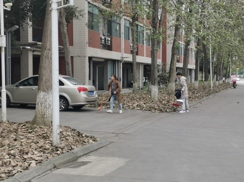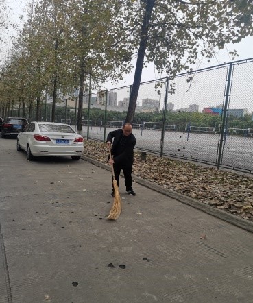 当天下午,同学们带好卫生工具热情满满地来到了实践地点--晨曦篮球场和排球场及信、敏、毅三园,樊书记也早早地来到了实践地点,并与同学们进行亲切的交流。按照分组,同学们将工作分为扫地、清扫两旁落叶和宿舍周边设备清洁打扫,并在分配好工作后认真开始打扫。樊书记也加入同学们的队伍中来,在劳动的同时言传身教,为同学们做榜样,并指导同学们如何高效地劳动。