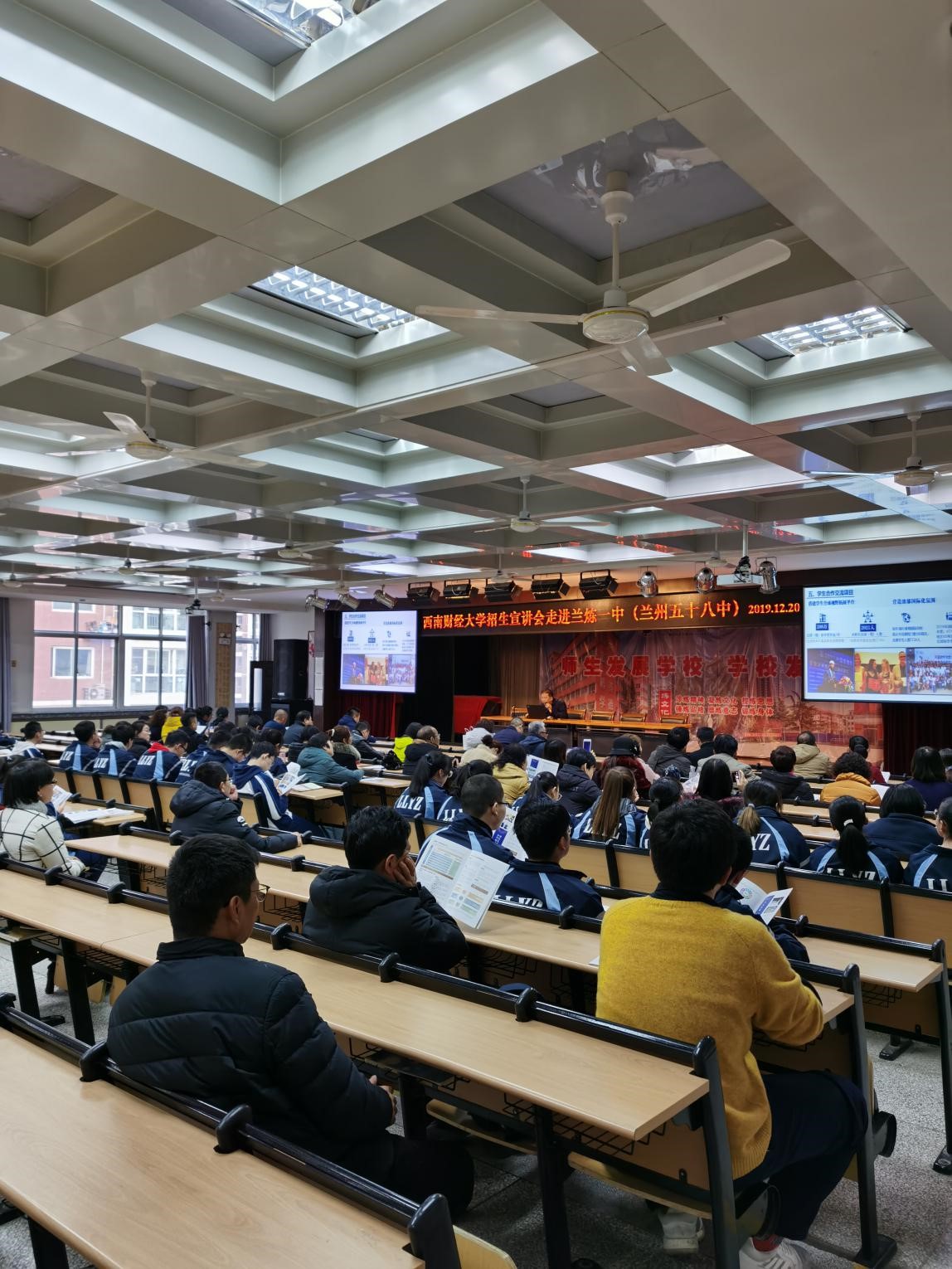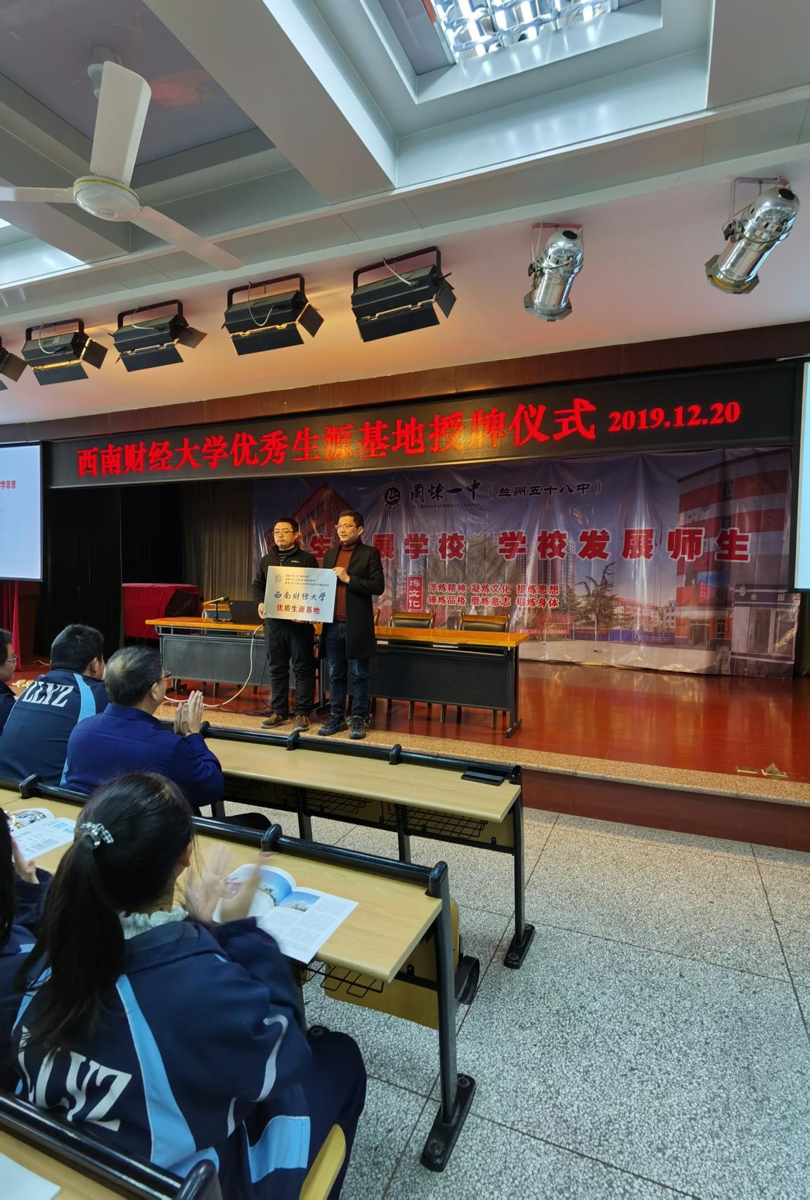 12月20日上午,招生小组人员赴兰化一中举行新葡的京集团8814vip“优质生源基地”签约挂牌仪式。仪式上,赵建容教授介绍了新葡的京集团8814vip的办学特色、办学水平、学科设置及2019年招生政策等,希望通过此次挂牌,加强与兰化一中的交流和联系,兰化一中周副校长对新葡的京集团8814vip的到来,表示热烈欢迎,希望通过挂牌,加强两校合作,共同培育更多优秀人才。12月20日下午,招生小组赴兰炼一中进行招生宣传工作,首先,与兰炼一中签订“优质生源基地”协议并举行挂牌仪式。然后,赵建容教授参加了兰炼一中博士大讲堂,为300名高二学子做了题为《孙子兵法与运筹学中的数学思想 》的讲座,最后向开理教授为高三学子和家长做了招生宣讲会,尹正教授就学生关心问题进行了解答。