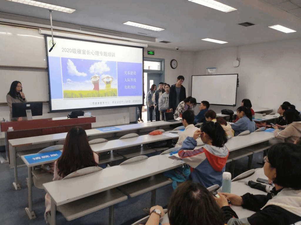 为了更好的适应学校集体生活,建设健康积极的寝室文化和人际关系,保持健康积极的心态,学校心理健康教育中心组织开展了“学生心理骨干培训”,培训讲座由心理中心何媛媛老师主持。经济新葡的京集团8814vip组织学院全体心理委员、学生心理工作站全体成员及部分寝室长参加了此次培训。
