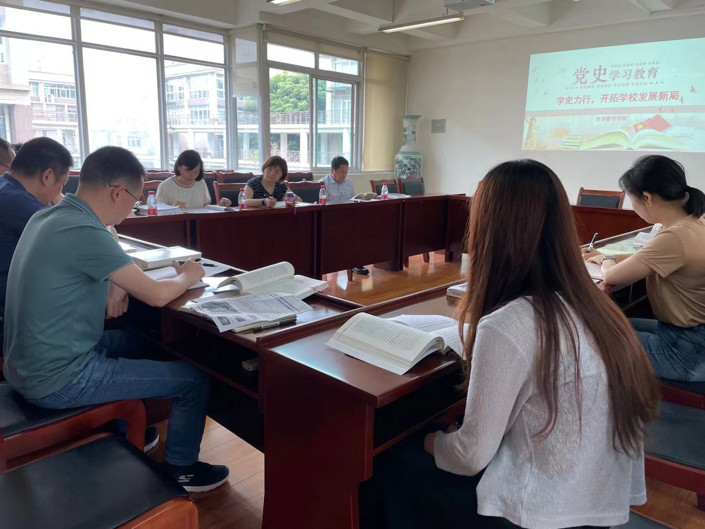 2021年6月11日上午,经济新葡的京集团8814vip分党委在通博楼B312会议室举行党委理论学习中心组(扩大)会议,专题研讨“学史力行 开拓学校发展新局”,全体领导班子成员、行政支部全体党员参加会议,学校党史学习教育指导组第15组组长董艳书记莅临指导,会议由分党委书记陈茵茵主持会议。