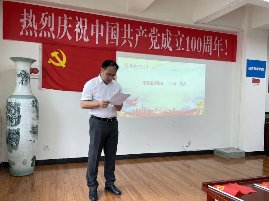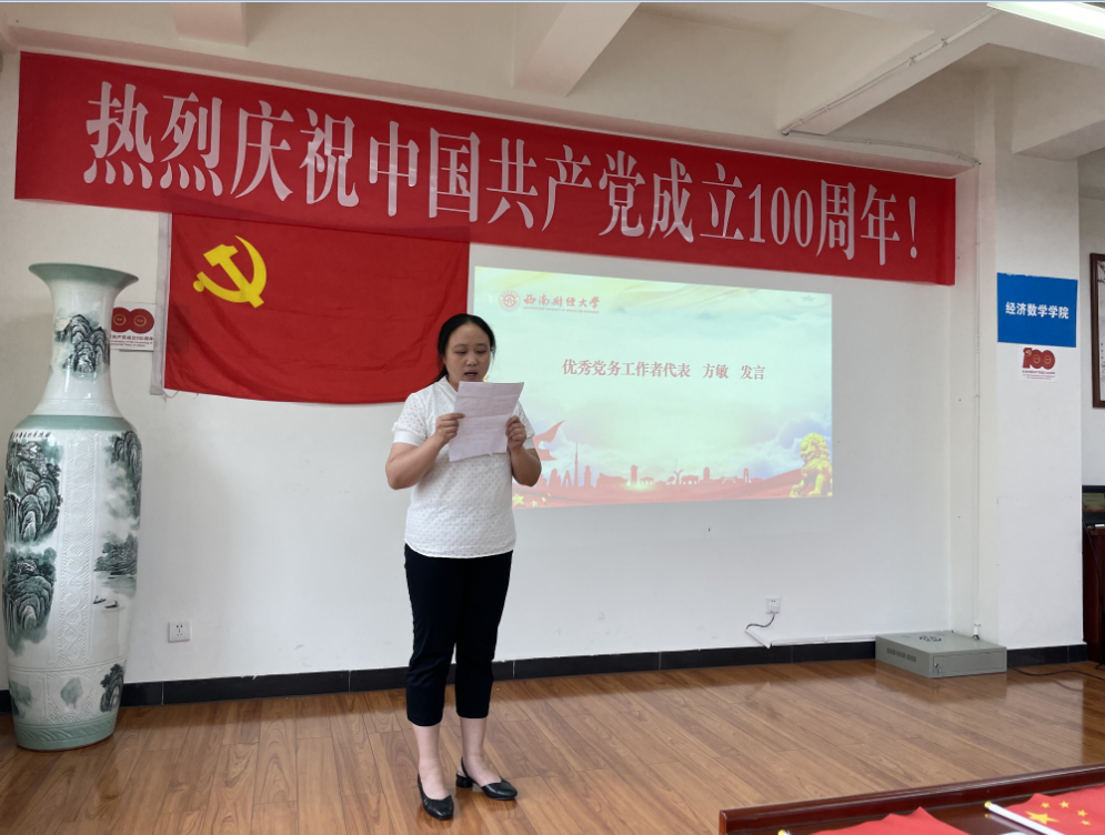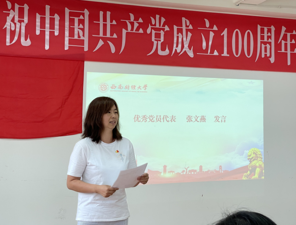 接下来,开展了院级“七一”表彰活动,学院共有王磊等16名同志被评为优秀共产党员、方敏等18名同志被评为优秀党务工作者。学院分党委书记陈茵茵为受表彰的优秀共产党员、优秀党务工作者颁发证书。优秀党员代表王磊、丁川、张文燕,优秀党务工作者代表方敏、新党员代表周丽婷、余颖,入党积极分子代表刘雨欣先后围绕“百年大党 风华正茂”主题,分享亲身经历、抒发深刻感悟,和在场师生一起重温党的光辉历程,共话初心使命,深切表达对中国共产党成立100周年的美好祝愿。
