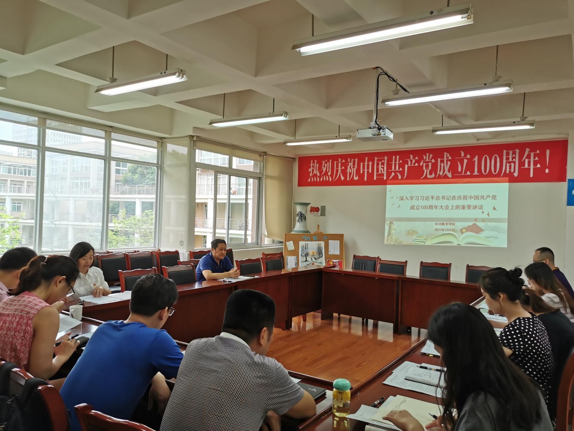 2021年7月8日上午,经济新葡的京集团8814vip分党委在通博楼B312会议室举行分党委理论学习中心组(扩大)会议,深入学习习近平总书记在庆祝中国共产党成立100周年大会上的重要讲话精神,全体领导班子成员、教师代表、行政支部党员参加会议,会议由分党委书记陈茵茵主持会议。