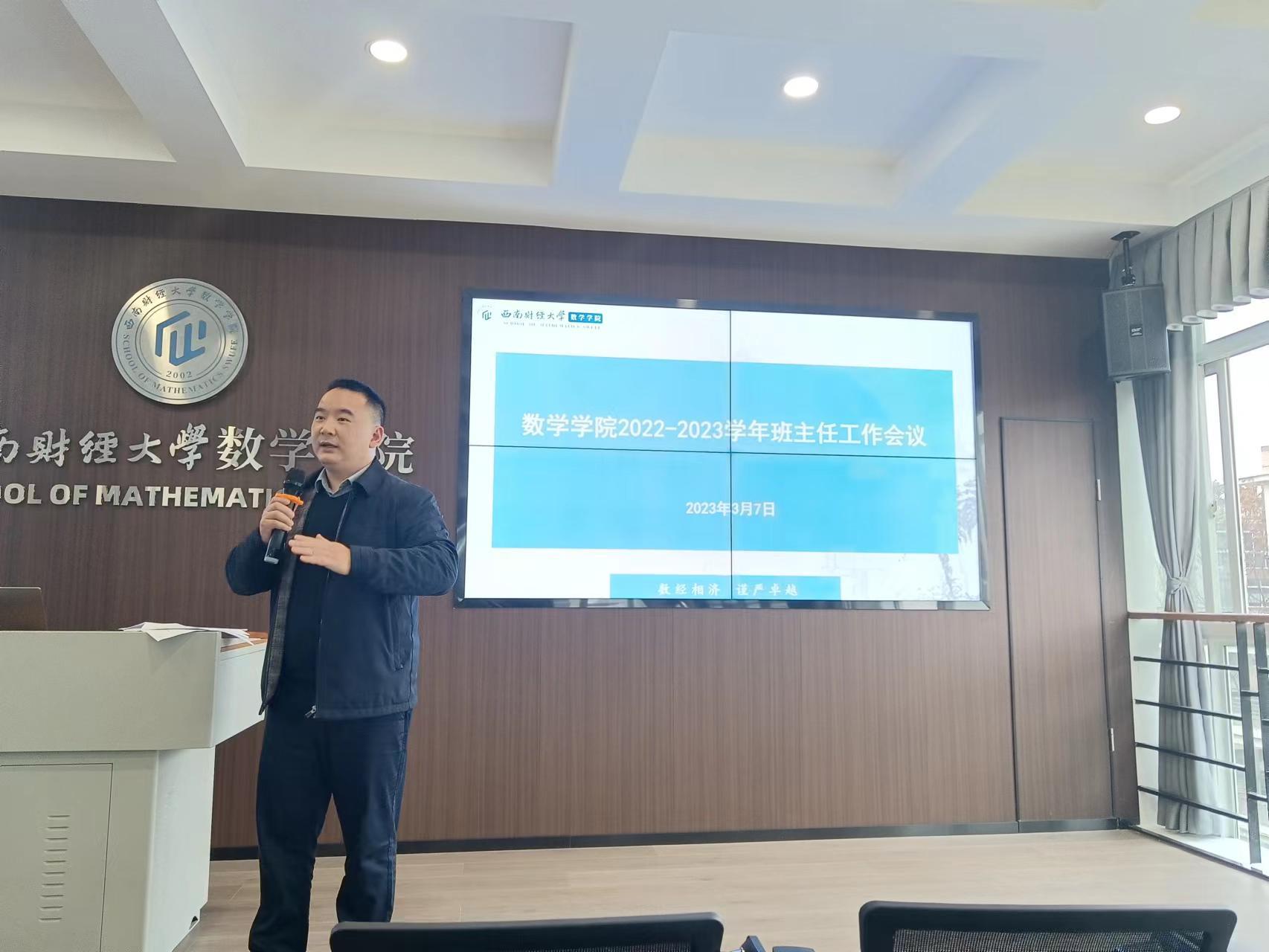 会上,郭开强总结了上学期班主任工作开展情况,介绍了本学期学生工作重点任务,和班主任一起再次认真学习了学校关于青年专任教师担任班主任管理办法和学院关于青年专任教师担任班主任考核实施细则。他指出,要认真履行岗位职责,落实立德树人根本任务,关心学生成长成才,做学生成长道路上的“引路人”;要遵循“思想政治工作规律、教书育人规律和学生成长规律”,结合所带年级或班级特点开展相关工作,经常性与学生交流,为学生解决实际问题,把工作做到学生心坎上;要加强班主任与辅导员之间的沟通协调,同向发力、同频共振,共同做好学生思想政治教育工作;要树立档案意识,做好日常工作记录,把功夫下在平时。