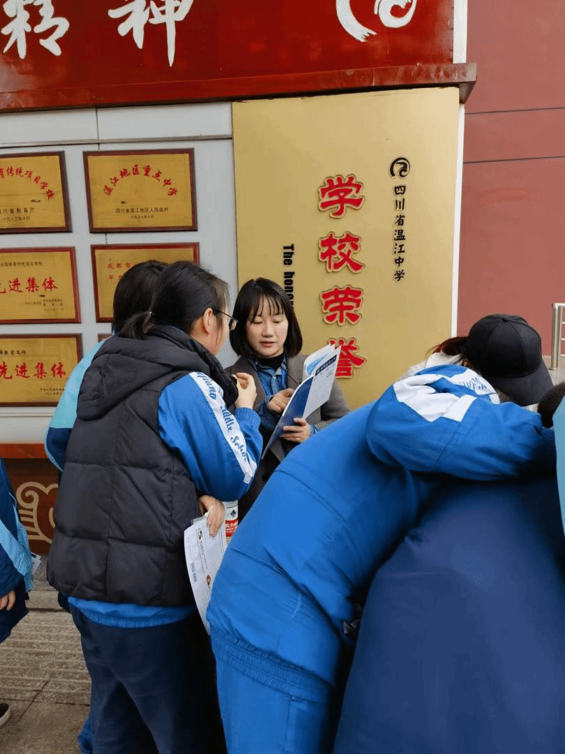 在宣传过程中,招生宣传小组工作人员向温江中学高三学子发放了新葡的京集团8814vip招生宣传相关资料,与他们进行了面对面的咨询交流,向重点生源同学开展一对一指导。同时,还向低年级同学发放了学校宣传资料和明信片,鼓励并欢迎同学们结合自身实际,积极报考新葡的京集团8814vip。