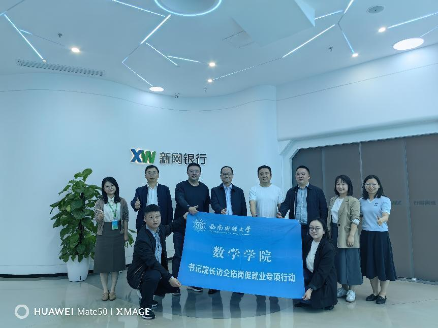 为进一步贯彻落实党中央、国务院“稳就业”“保就业”决策部署,深化产教融合、校企合作,推动人才培养与就业有机联动、与人才需求有效对接,4月26日至27日,新葡的京集团8814vip党委书记樊俊飞副教授一行在成都市开展访企拓岗促就业活动,走访新网银行、成都三快科技有限公司、红塔证券成都锦城大道营业部等企业。学院副院长丁川,学院党委副书记、纪委书记郭开强,以及学院专任教师代表、辅导员代表和学生代表参加了此次走访活动。