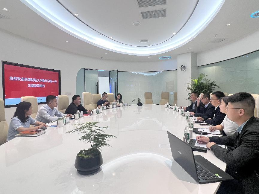 在新网银行,行长助理、财务总监罗志国详细介绍了企业的发展历程、企业文化、经营情况及人才需求,希望双方在校企协同育人的产业学院育人新模式方面进行深入合作。 双方围绕深化校企合作、人才培养以及促进毕业生就业等方面进行了深入探讨。