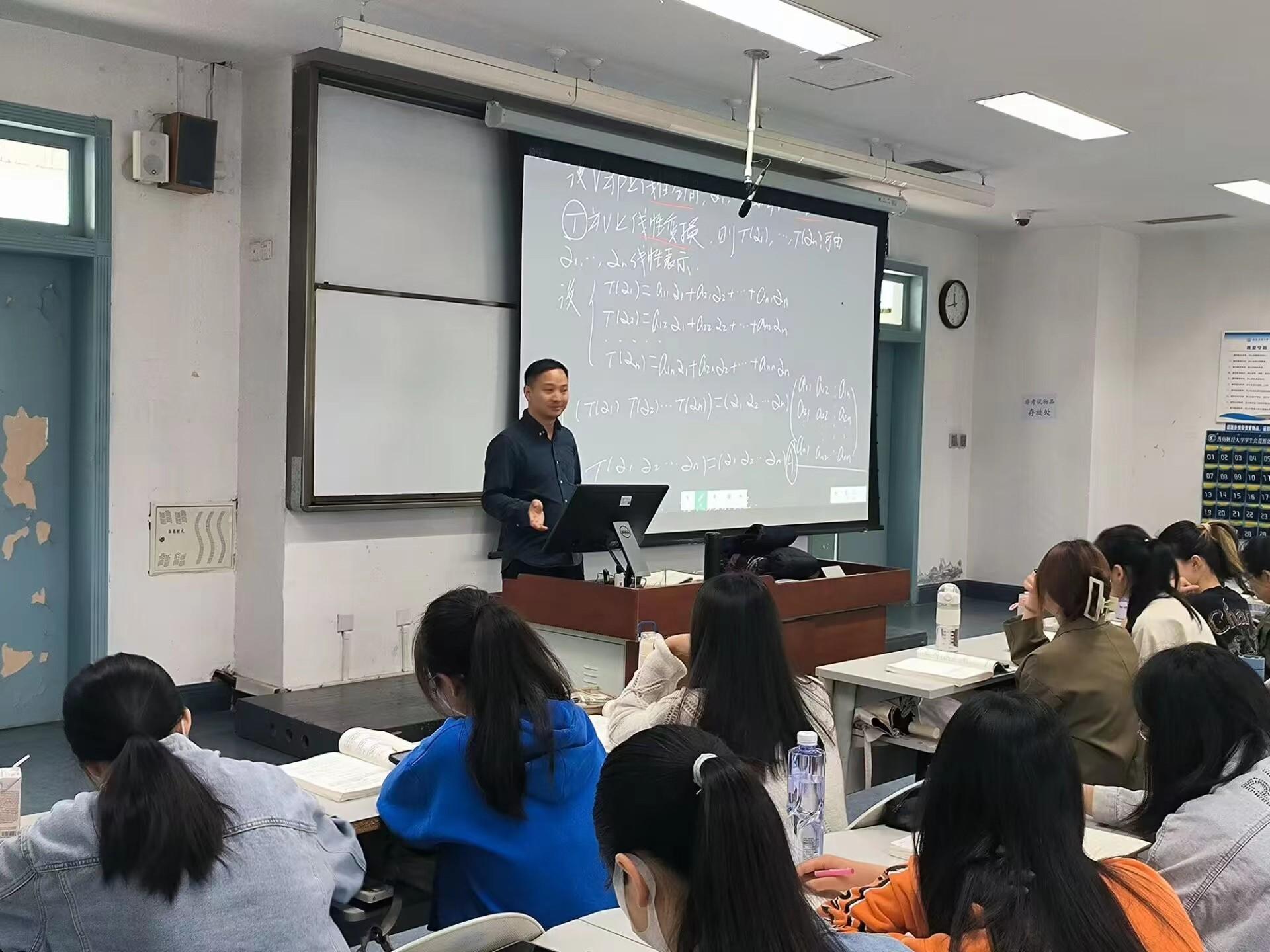 韩本三老师本次课程讲授了《高等代数》中的线性变换矩阵。为了让学生更好地理解线性空间,韩老师首先从线性变换矩阵入手,通过探究式教学引导同学们建立了线性变换空间与矩阵空间的同构关系。