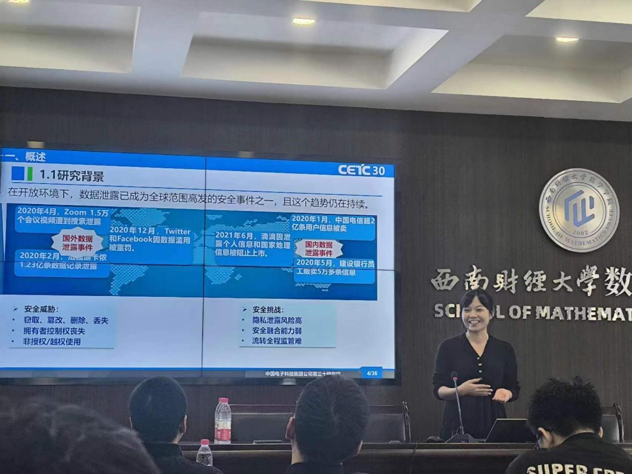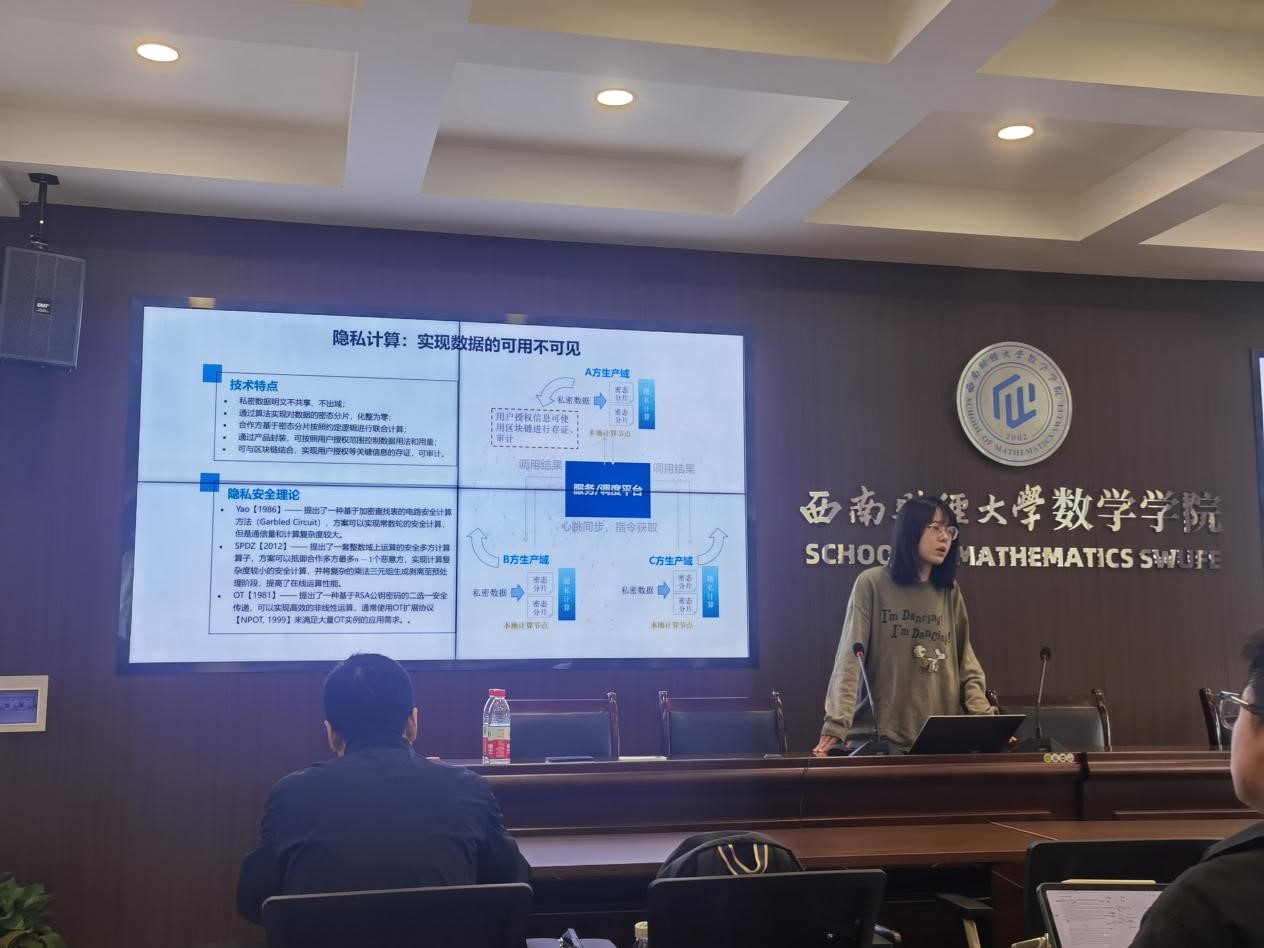 本次研讨会主题涵盖无模型的数据子抽样、基于安全多方计算的隐私保护技术、多方阈值隐私集合求交协议技术求交等众多研究方向。与会师生围绕人工智能与数学交叉领域的研究热点深入交流研讨,在互动中展示最新成果、交流学术观点,共同推进学院人工智能与数学交叉领域理论研究,努力为建设财经特色鲜明的世界一流大学作出新的贡献。