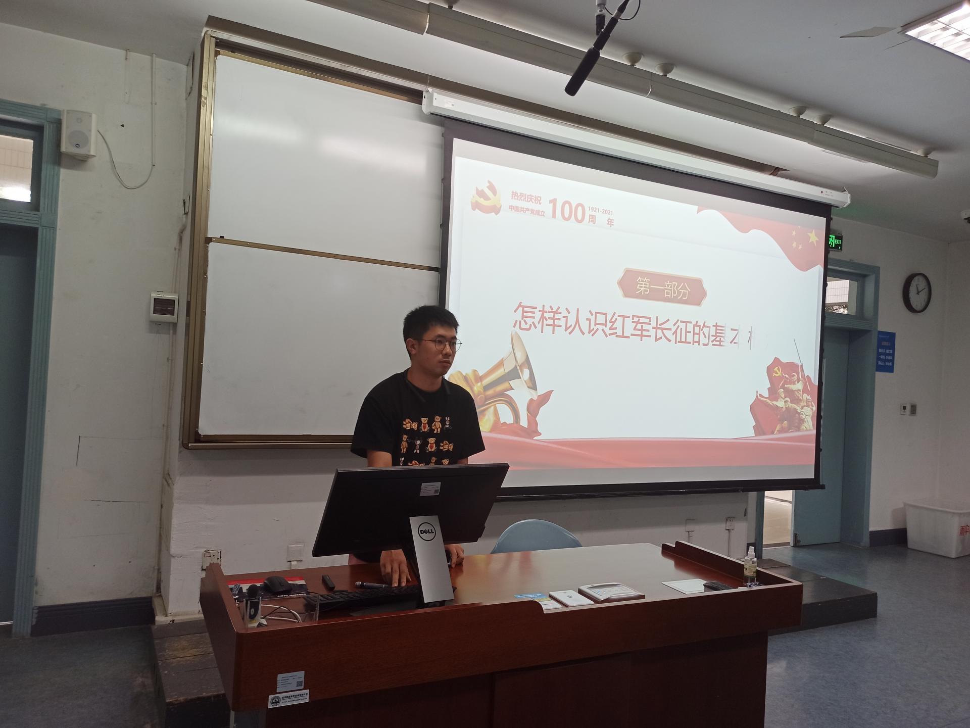 主题班会上,主讲人选取了红军长征这一历史壮举,详细讲述了红军长征过程中的相关史实,重点介绍了在中国共产党发展的长河中浓墨重彩的一笔——遵义会议。同学们在班会过程中认真聆听主讲人的介绍。在介绍完长征后,主讲人邀请同学们发表自己的感悟,同学们纷纷表示,为红军长征这一壮举感到震撼,被共产党坚定的理想信念所深深折服。