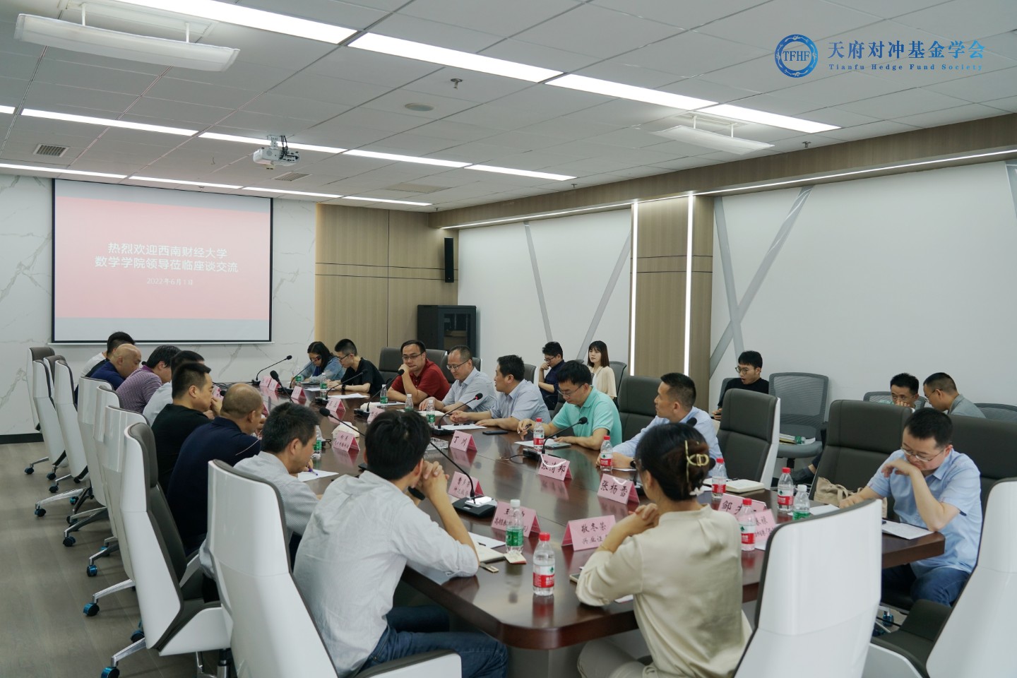 调研座谈会由天府对冲基金学会秘书长李一辉主持。学院执行院长马敬堂介绍了学校历史沿革及新葡的京集团8814vip的学科建设、科学研究、人才培养等情况,强调经过二十余年的发展,学院获批数学一级学科博士点,形成了 “金融+数学、数学+经济” 的鲜明人才培养特色,在基础数学、计算数学、金融数学等领域取得了一批高质量的研究成果。副院长丁川在发言中希望双方以此次座谈会为契机,加深产教融合,着力构建协同育人新机制。乾隆科技总经理向东、国贸期货(四川)总经理谢久寒、华创证券四川分公司副总经理陆地、中信建投期货研发总监夏旗、成都三度教育总经理蒋文辉、金融数学系主任张清邦教授、数理金融研究中心主任王磊教授、国家超级计算成都中心计算金融联合实验室主任张昕博士、青年教师杨洋等先后发言。双方共同探讨了如何面向特定行业、特定领域、特定市场需求开展产学研合作,寻找合作切入点,双方在期权定价和期权策略开发、产学研SaaS服务开发、学生实习就业和创新创业方面进行探讨,并围绕机器学习、深度学习以及在量化投资中的应用、量化交易在私募基金中的诸多方面运用进行了深入畅谈。