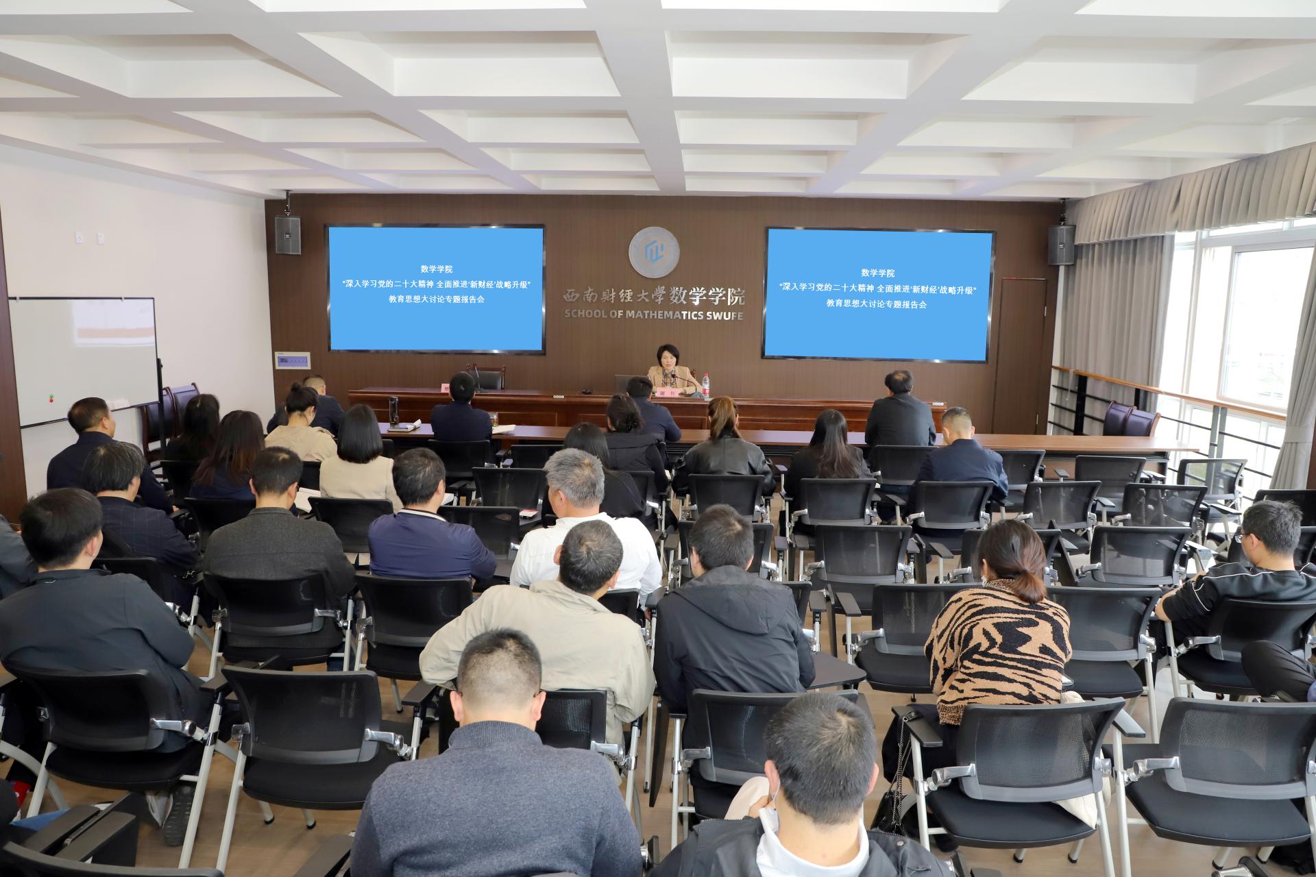 谢红以《深入贯彻落实“人才引领支撑”重要部署,为全面推进‘新财经’战略升级提供有力支撑》为题进行专题辅导。她围绕“人才队伍建设是‘新财经’战略升级的关键支撑”、“学校党委关于推进人才引领支撑的新部署新要求”、“为全面推进‘新财经’战略升级贡献数学学科力量”三个方面作辅导报告。她指出,数学学科发展取得重要进步,学校“理工攀登计划”新葡的京集团8814vip肩负重任,学院应在变革中优化学科定位,在交叉研究中展现数学力量,在师资建设中科学落实规划,在推进学校“新财经”战略升级中主动作为、善作善成,作出新葡的京集团8814vip应有贡献。