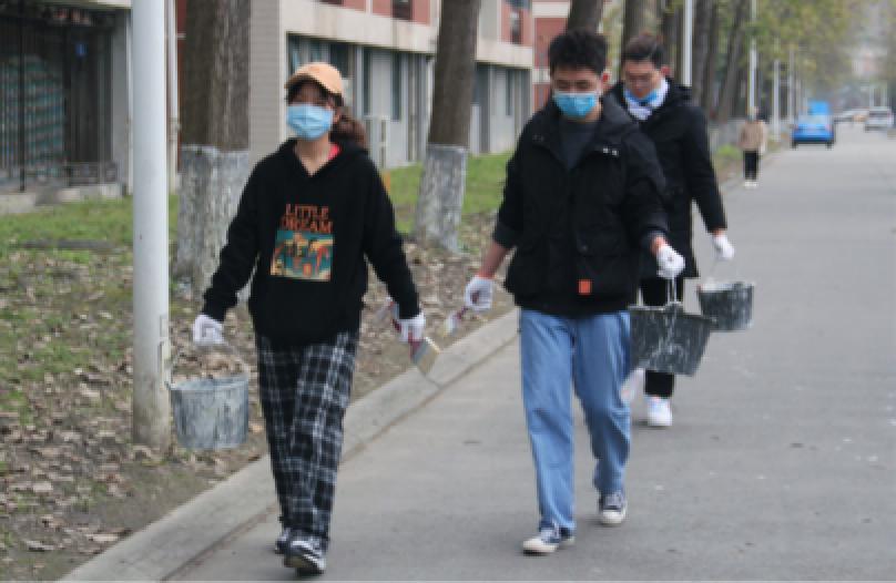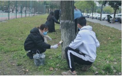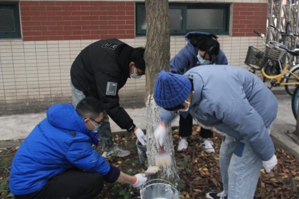 当天下午三点五十分,同学们戴好口罩,在指定地点领取好刷树工具,热情满满地到达劳动实践地点——敏园和信园周围的绿化带,同学们投入到热火朝天的刷树中,为树木刷上一层石灰桨,不仅在寒冷的冬日为树木送去温暖,还能有效防止虫蛀危害,给树木带来双重保障。