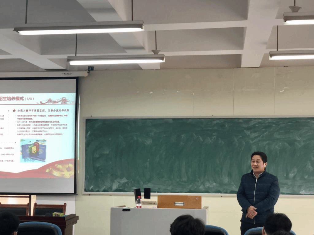 马敬堂院长首先强调了现阶段高层次人才培养的重要性与迫切性,并鼓励大家结合全国研究生教育会议精神深入思考此次课程内容;随后,就习近平总书记对研究生教育工作的重要指示精神以及《关于加快新时代研究生教育改革发展的具体意见》内容进行了详细的介绍。马敬堂院长从学生、导师、学院三方面提出了提升研究生教育质量的建议:对于学生,要谨记自己的研究方向,夯实自身能力基础,以高标准严格要求所撰写的学术论文,提升学术等方面的造诣;对于导师,需不断学习,完善研究结构,提升学生团队的研究能力;对于学院,应重视学科交叉的人才培养机制,如人工智能、区块链、大数据分析等科技前沿和关键领域与金融数学学科的交叉应用。最后,马敬堂院长希望同学们能坚持加强思想政治理论学习,牢记“四为”方针,在以后的学习生活中更加努力刻苦,争取成为适应多领域需要的国之栋梁。