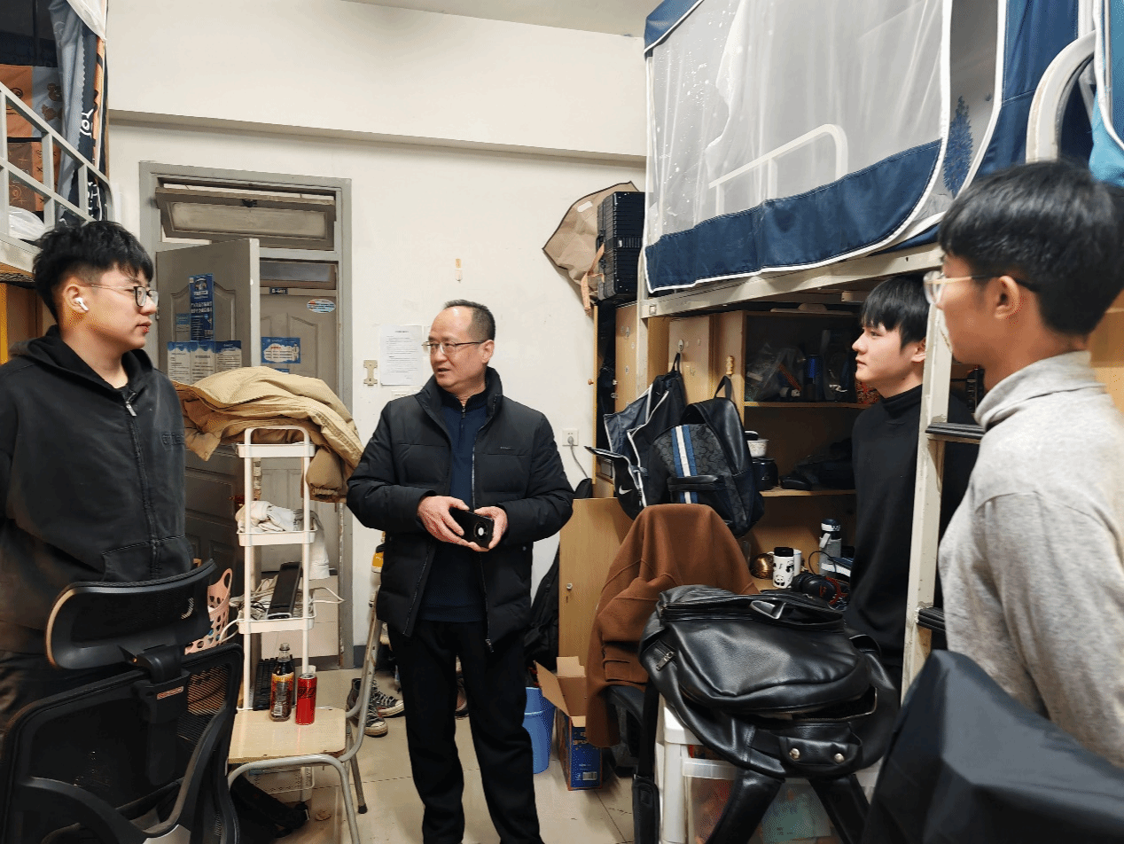 为贯彻落实学校2024年中层干部学习会精神,做好开学初学生工作,深入了解学生思想动态,开学第一周,新葡的京集团8814vip领导班子全体成员和辅导员走访学生寝室。