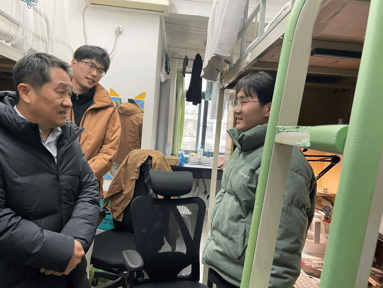 走访中,学院领导围绕假期生活、学习状况、就业情况和新学期计划等与同学们进行亲切交谈,切实了解同学们在学习、生活中遇到的问题,积极回应大家的需求和建议。嘱咐同学们要遵守校规校纪,增强安全防范意识,做到安全用电;做好寝室卫生,注意通风,打造整洁有序的宿舍环境;养成良好的生活卫生习惯,同学之间友爱互助;珍惜时间,好好学习,树立优良学风。