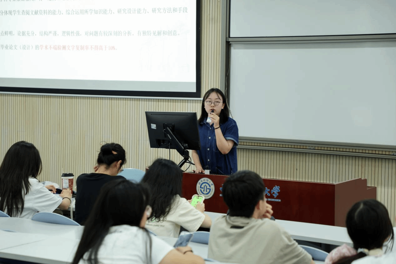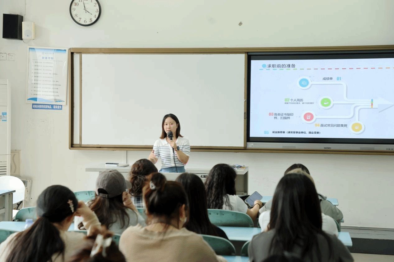 其中,研究生专场在经世楼C201开展。研究生教学秘书刘煜凡老师介绍了研究生毕业论文相关事宜。研究生辅导员王蓉老师分析了学院研究生历年就业情况,详细介绍了求职前期的准备、求职过程中的注意事项以及核对生源信息、求职、毕业论文、就业信息填写和毕业派遣等行程安排,要求同学们严守校规校纪,安全毕业、文明毕业。