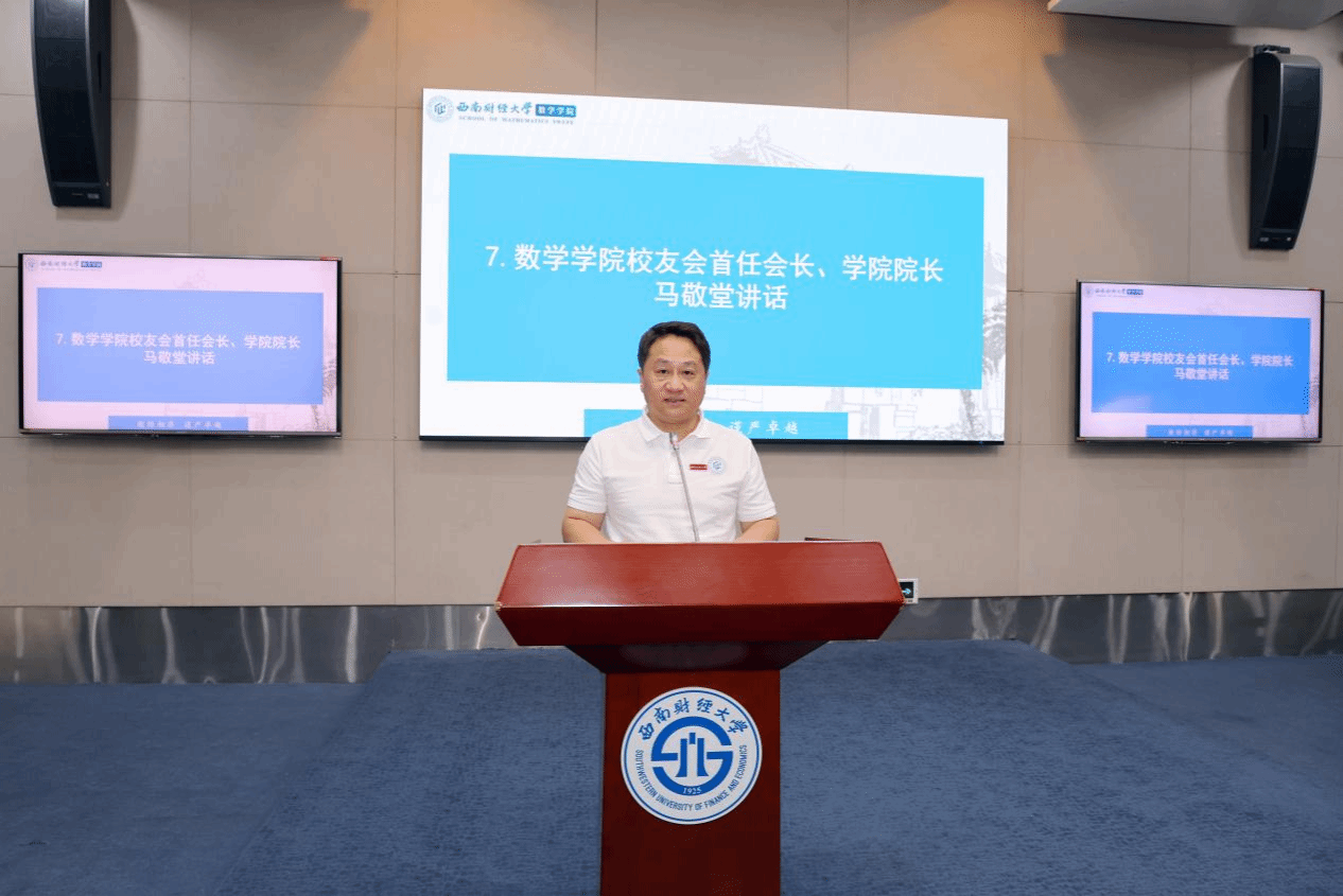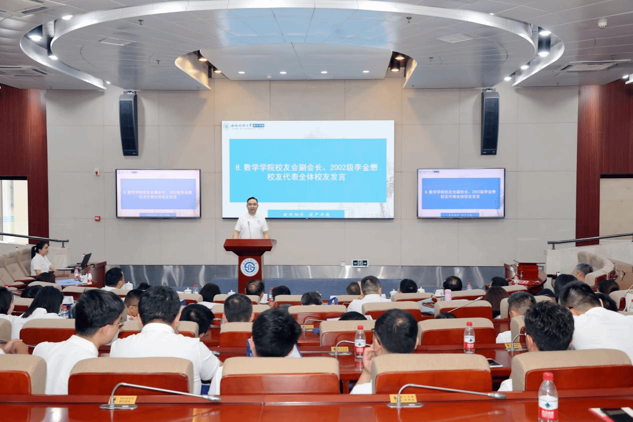 新葡的京集团8814vip校友会副会长、2002级校友李金懋代表全体校友发言。他衷心感谢学院组织倡导成立校友会,在母校即将百年华诞之际让数学学子找到了家。他动情地回忆起美好的校园生活,怀念曾经的青春时光、曾经的同学友谊、曾经的师生之情。他讲到,在西财的学习成长经历是人生中最宝贵的财富,是西财培养了大家,造就了大家,无论身在何处,在何种岗位发光发热,校友们都会秉持“严谨、勤俭、求实、开拓”的校训,践行“经世济民、孜孜以求”的西财精神,为学院以及学校发展增光添彩。他倡议校友们明年再次聚首校园,共庆母校百年华诞!