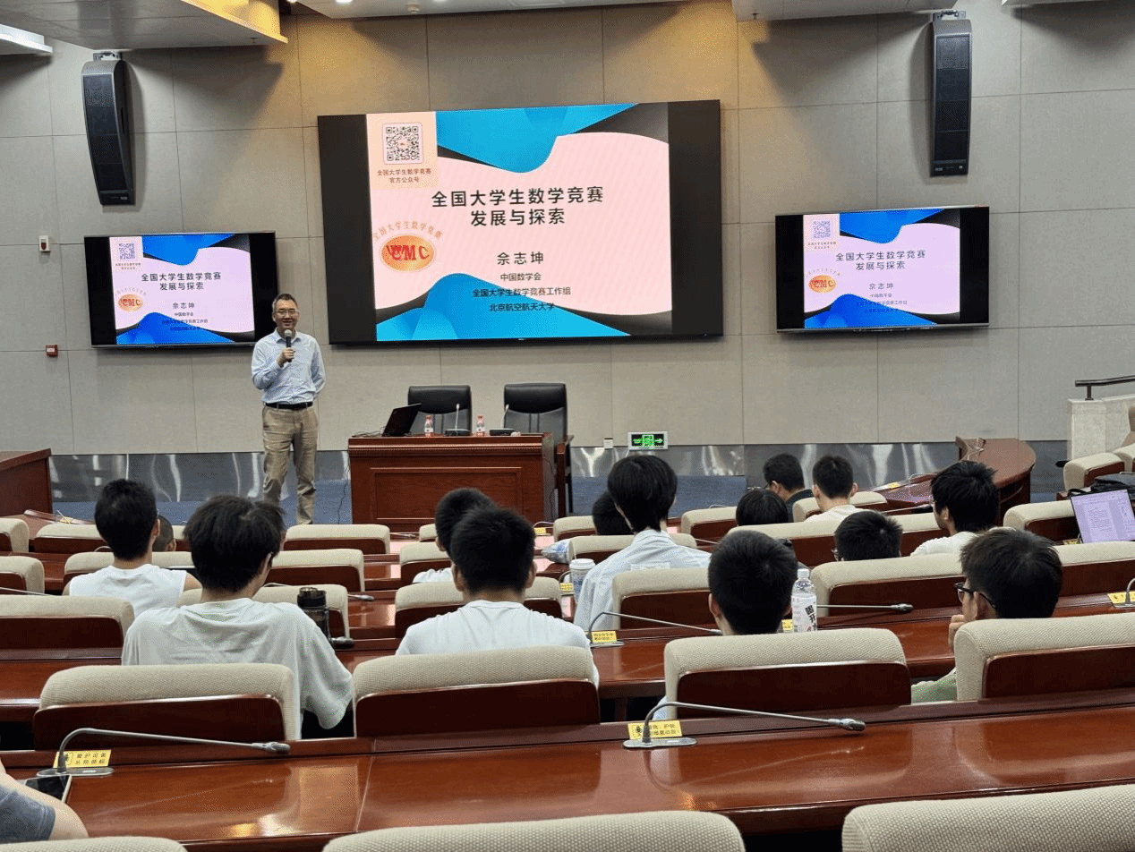 2025年5月30日上午,新葡的京集团8814vip在弘远楼101举办了题为“全国大学生数学竞赛发展与探索”的专题讲座,全国大学生数学竞赛工作组组长、北京航空航天大学佘志坤教授主讲,新葡的京集团8814vip赵建容教授主持,讲座吸引了全校众多师生参与聆听。