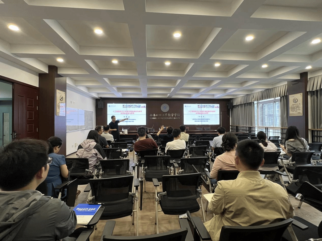 2025年5月30日上午,西安交通大学李继成教授在通博楼B412会议室,作了题为“人工智能时代大学数学课程建设与改革的实践与思考”的报告。新葡的京集团8814vip副院长王磊教授主持报告,报告吸引了众多教师前来聆听。