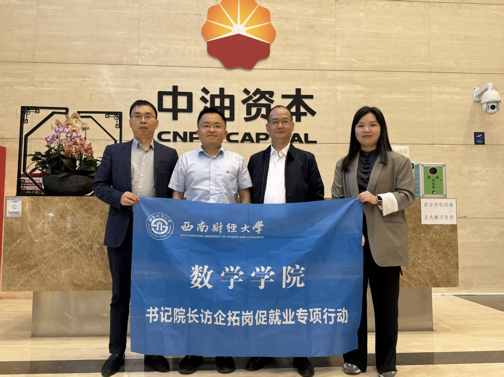 4月23日,学院党委书记樊俊飞带队走访中石油专属财产保险股份有限公司