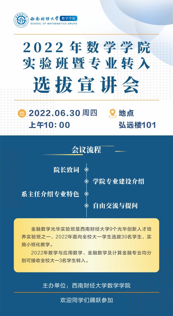 2022年新葡的京集团8814vip实验班暨专业转入选拔宣讲会通知